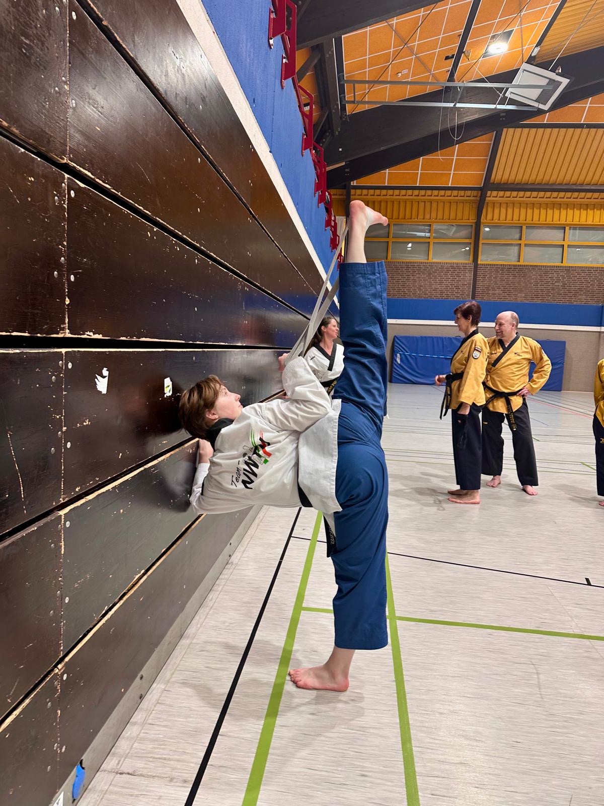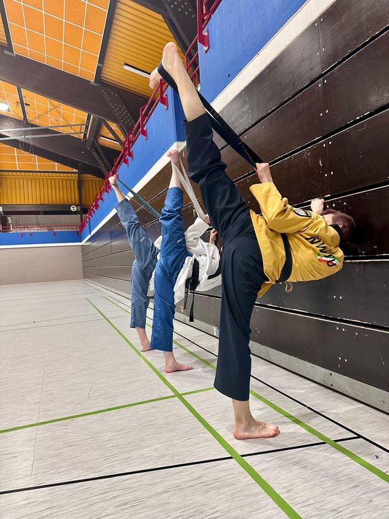 Den Auftakt machten die Youngstars der Altersklassen Minis, Kadetten und Junioren. Für die Nachwuchssportler/innen standen zunächst wichtige Grundlagen der Technik auf dem Programm. Trainiert wurden insbesondere Drehungen, Beschleunigung sowie die korrekte Ausholbewegung der Techniken. Im zweiten Trainingsabschnitt ging es anschließend in die Formenarbeit, bei der neben der technischen Ausführung auch die Präsentation der Poomsae im Mittelpunkt stand. Den Abschluss der Einheit bildete ein intensives Training mit Schlaufenbändern, das gezielt Kraft, Stabilität und Präzision fördert.