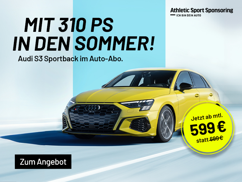 Den S3 gibt’s im Auto-Abo unseres Partners Athletic Sport Sponsoring – eine monatliche Rate, alles drin!