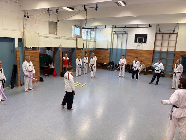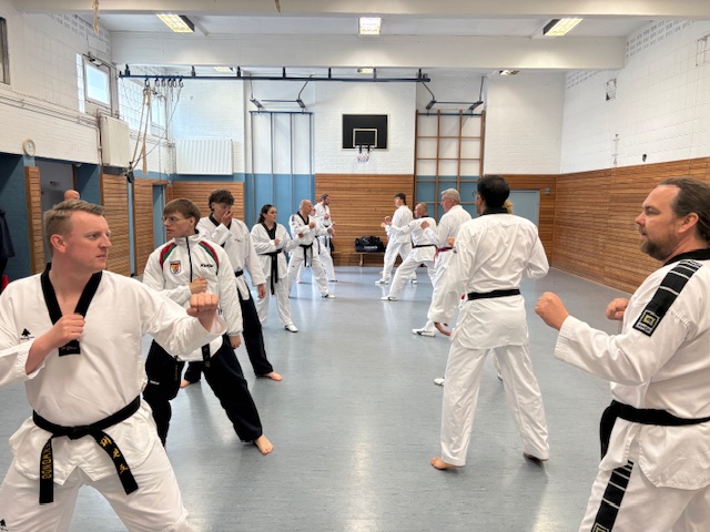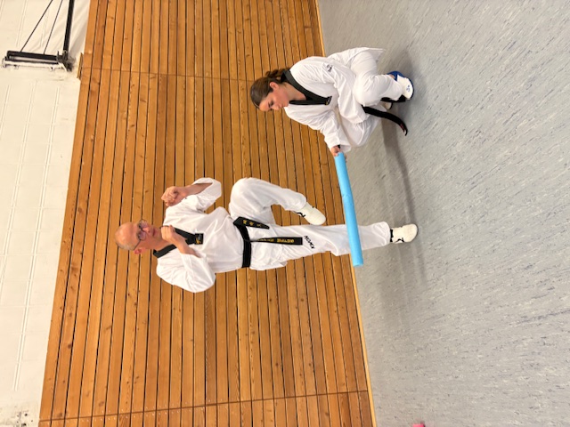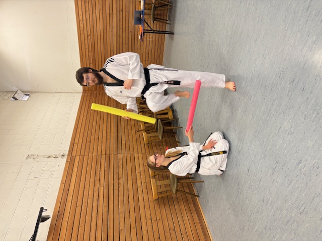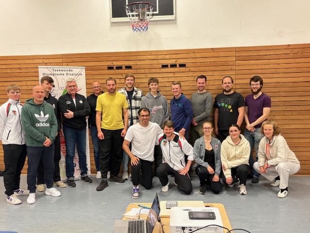 Natürlich wurden auch praktische Lerninhalte eingeübt wie Aufwärmspiele für verschiedene Altersgruppen, effektive Dehnübungen, die Zerlegung von komplexen Bewegungsabläufen in kleinere Einheiten am Beispiel von unterschiedlichen formen- und wettkampforientierten Techniken für den Einschrittkampf oder die Verbesserung der Zielgenauigkeit bei Tritten, um nur einige der vielfältigen Übungen zu nennen.