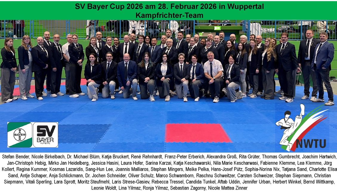 Das 1. NWTU Nachwuchsturnier Technik - SV Bayer Cup 2026 war mit 547 Starts, also mit mehr als 1.000 Formenvorträgen in allen Leistungsklassen der Gruppen Einzel, Paar, Team, Freestyle, Family und Para sehr gut besetzt und hat die Erwartungen an die Teilnehmerzahl und auch das Niveau der Darbietungen übertroffen.