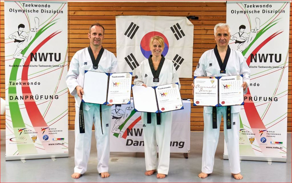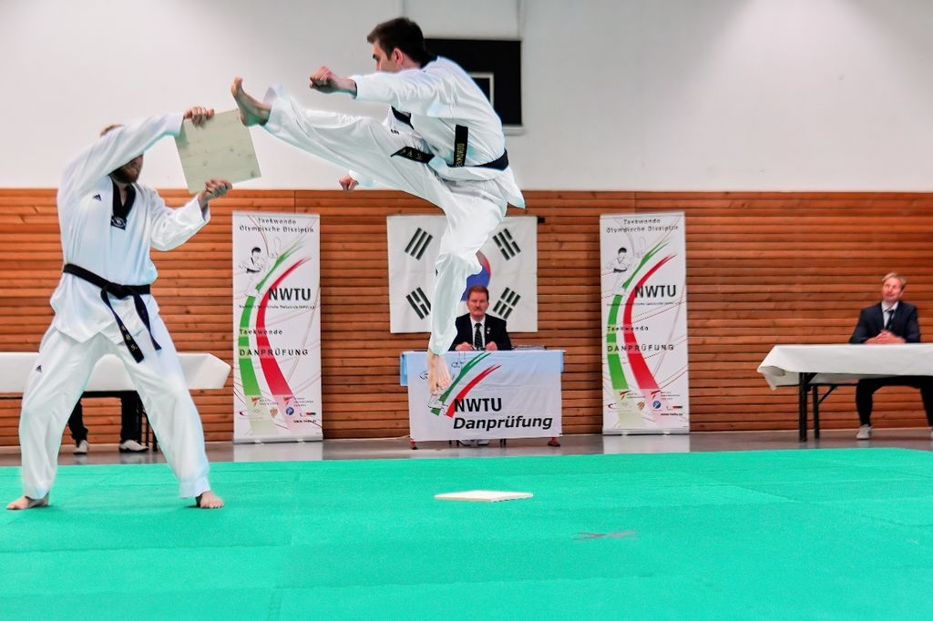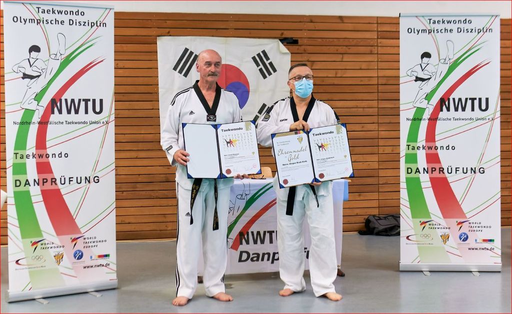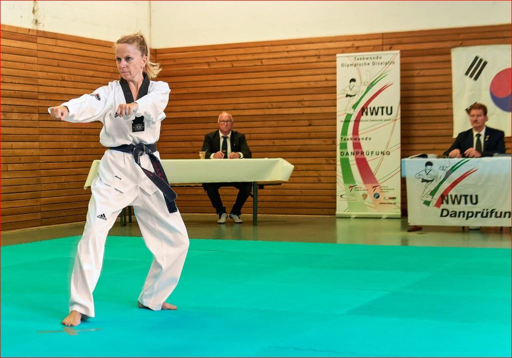 Nachdem die Bundesdanprüfung der Deutschen Taekwondo Union e.V. (DTU) in Altdorf bei Nürnberg im Dezember 2020 aufgrund der Corona-Pandemie abgesagt werden musste, plante die Nordrhein-Westfälische Taekwondo Union e.V. (NWTU) eine Bundesdanprüfung innerhalb des Landes am Standort Eschweiler. Nach drei Verschiebungen und einer Absage aufgrund des Lockdowns, konnte nun endlich am 05.06.2021 eine Bundesdanprüfung (4. - 8. Dan) stattfinden. Zuerst war diese als erste virtuelle Bundesdanprüfung geplant, doch in Münster bot sich eine Chance, die goldwert für alle war. In Münster war seit über drei Wochen der Inzidenzwert unter 35, sodass die präsente Ausrichtung kurzfristig nach Münster verlegt werden konnte. Hierzu gilt ein besonderer Dank an Abteilungsleiter Klaus Zumdick des ausrichtenden Vereins, DJK SV Mauritz e.V. - Taekwondo, der dies ermöglichte und gute Vorarbeit leistete.